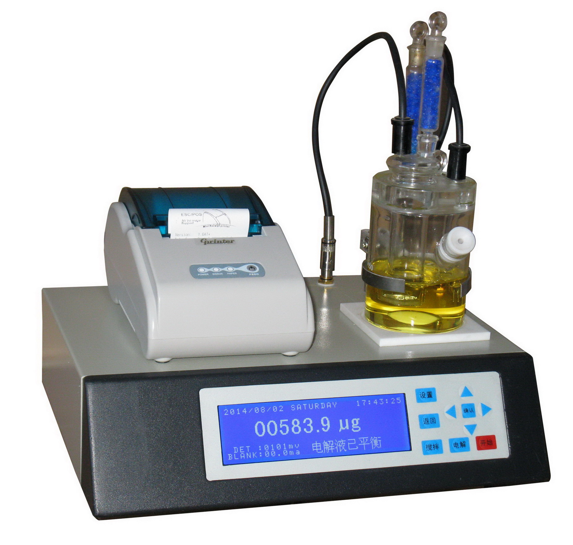自檢:測量(liàng)電極短路(lù)開路中文(wen)提示,直觀(guan)顯示電解(jiě)液狀态。卡爾費(fei)休水分測(ce)定儀