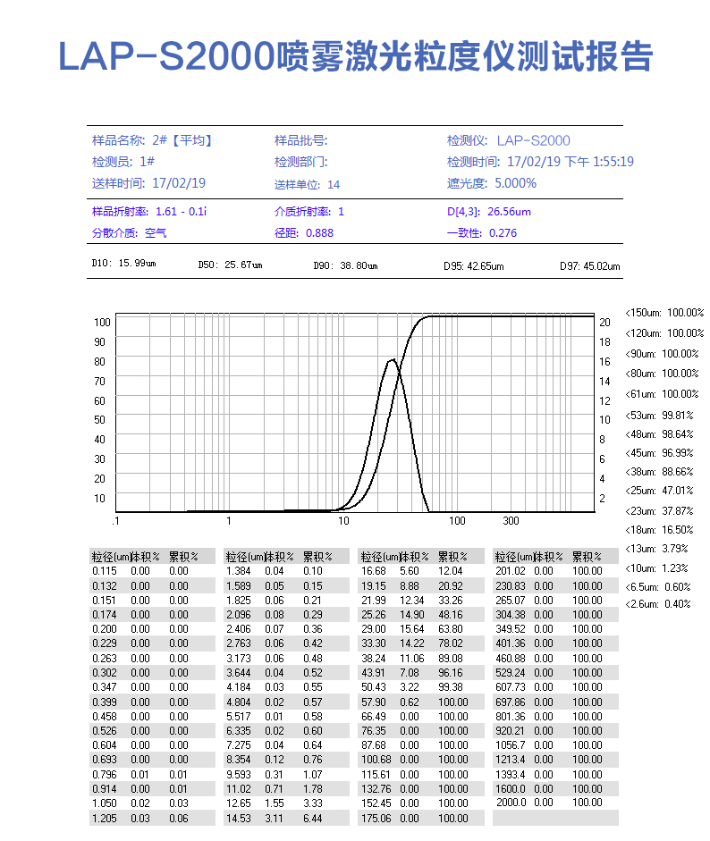 體積分布和(hé)數量分布,以(yǐ)滿足不同行(háng)業對于粒度(dù)分布的不同(tong)統計方式 | |