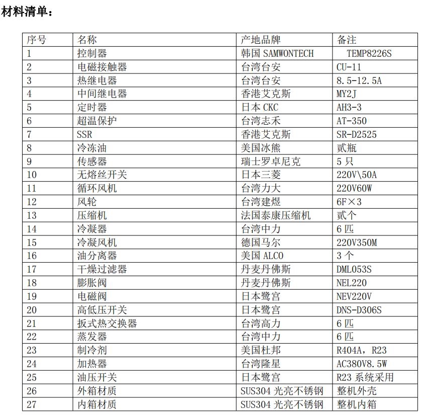 18.制冷(leng)壓縮機:采用(yòng)法國泰康壓(yā)縮機